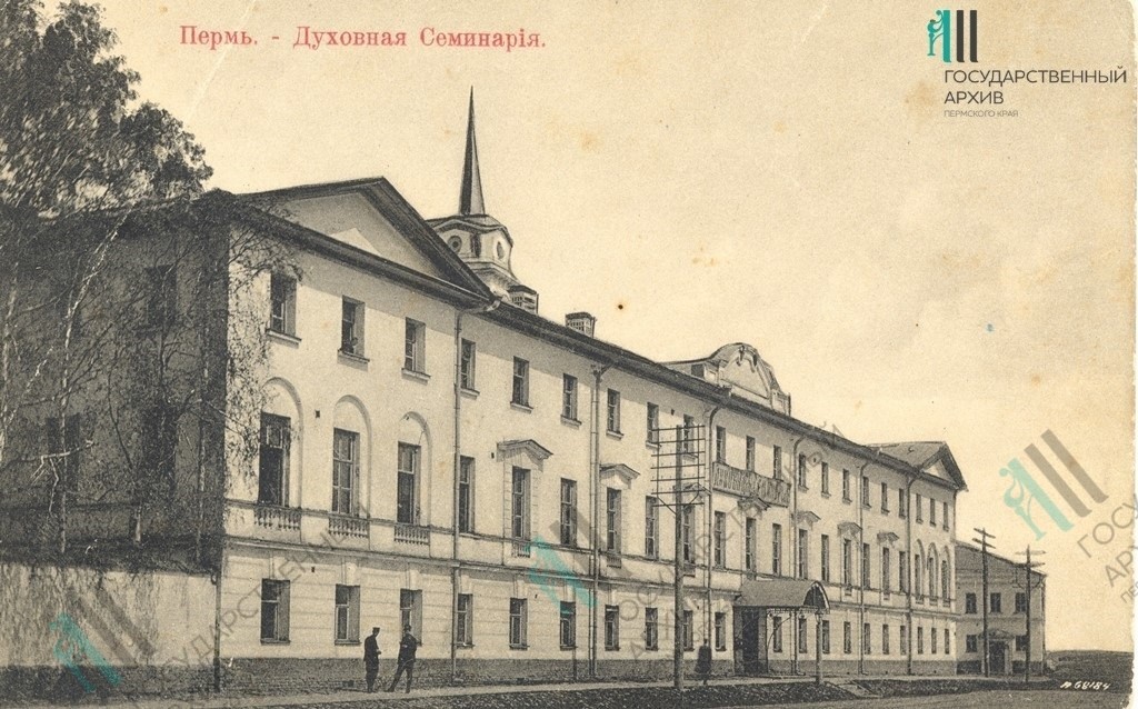 Перечень выявленных документов: Пермская духовная семинария. Начало XX в. Открытка // ГАПК. Ф. ф-60. Оп.60п. Д.279; Клировые ведомости Иоанно-Богословской церкви при духовной семинарии г.Перми за 1915, 1917 гг. // ГАПК. Ф. 195. Оп. 1. Д. 7. Л. 157-164., Ф. 195. Оп. 1. Д. 102. Л. 314-325., Ф. 108. Оп. 1. Д. 29. Л. 157-164.