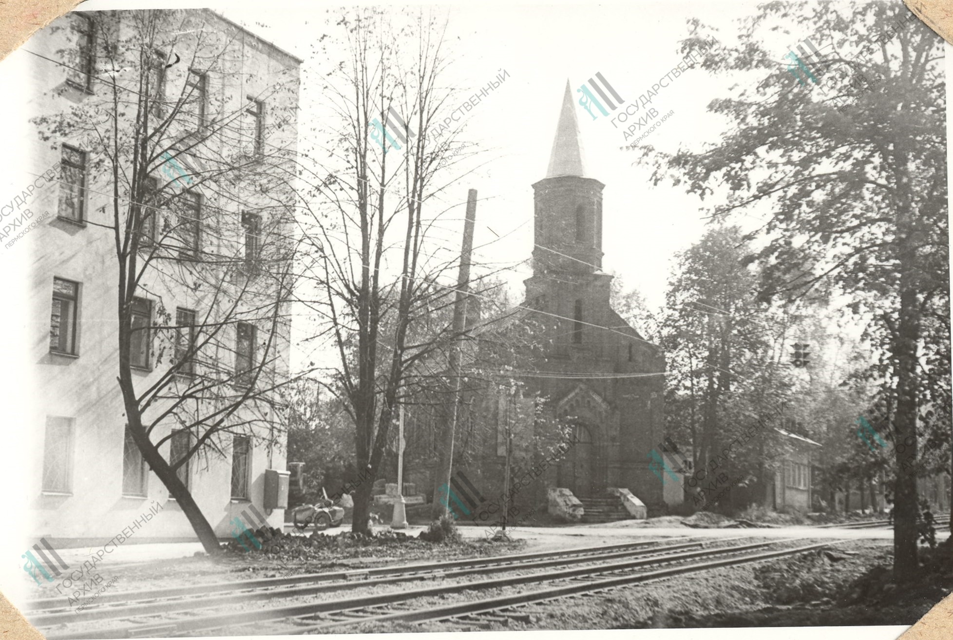 Реквизиты документа: Здание лютеранской кирхи в г. Перми. 1982 г. Фотография // ГАПК. Ф. ф-78. Оп. 78п. Д. 39.
