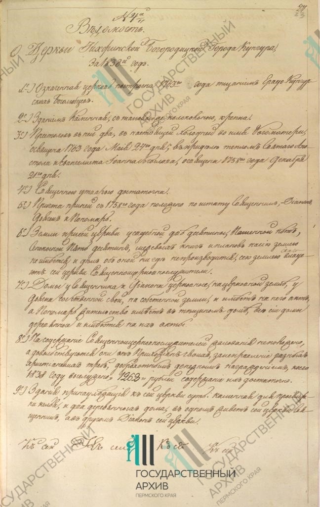 Перечень выявленных документов: Клировые ведомости Тихвино-Богородицкой церкви г.Кунгура за 1838 г. // ГАПК. Ф. 198. Оп. 1. Д. 207. Л. 23-27 об.; Вид на Тихвинскую церковь в г. Кунгуре, Пермская губерния, 1900 г. Фотография // ГАПК. Ф. 613. Оп. 3. Д. 442.