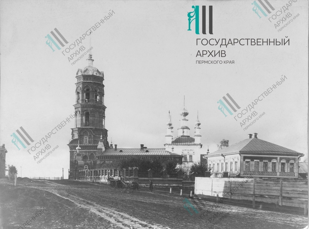 Реквизиты документа: Вид на Тихвинскую церковь в г. Кунгуре, Пермская губерния, 1900 г. Фотография // ГАПК. Ф. 613. Оп. 3. Д. 442.