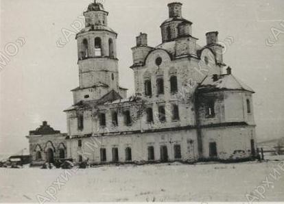 Реквизиты документа: Крестовоздвиженская церковь в с. Сылвенское. 1950 г. Фотография // КГА. Ф. р-1001. Оп. 1. Д. 118