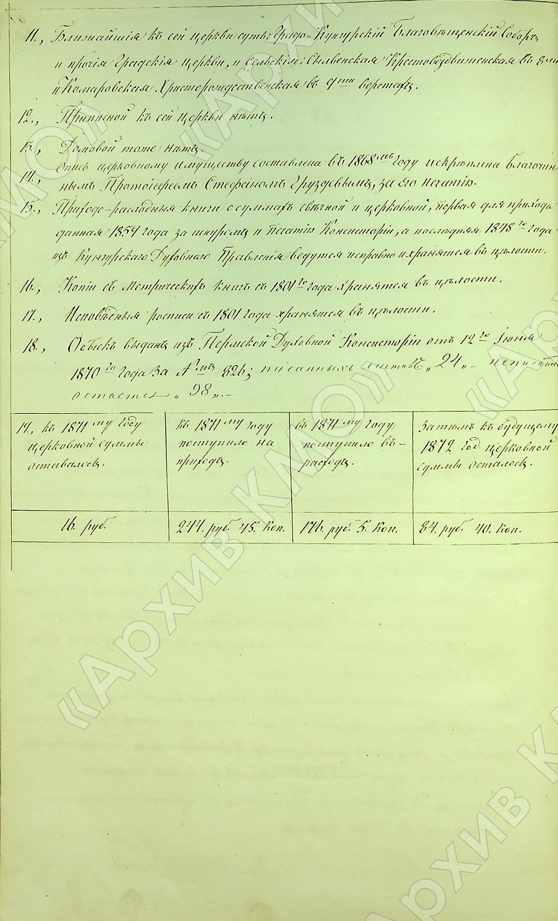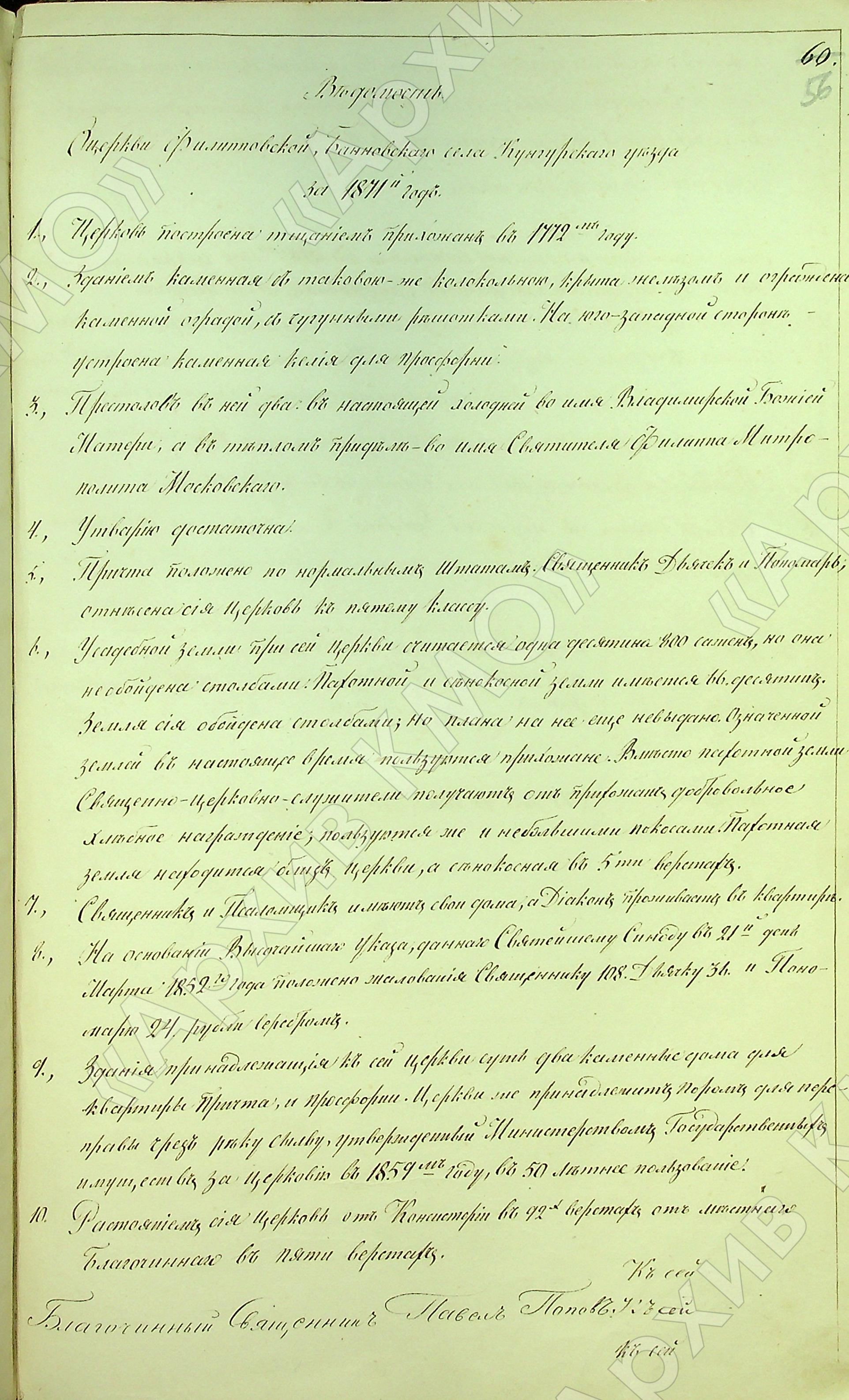 Реквизиты документа: Клировая ведомость Филипповской церкви за 1871 г. // КГА. Ф. 497. Оп. 1. Д. 5. Л. 56.