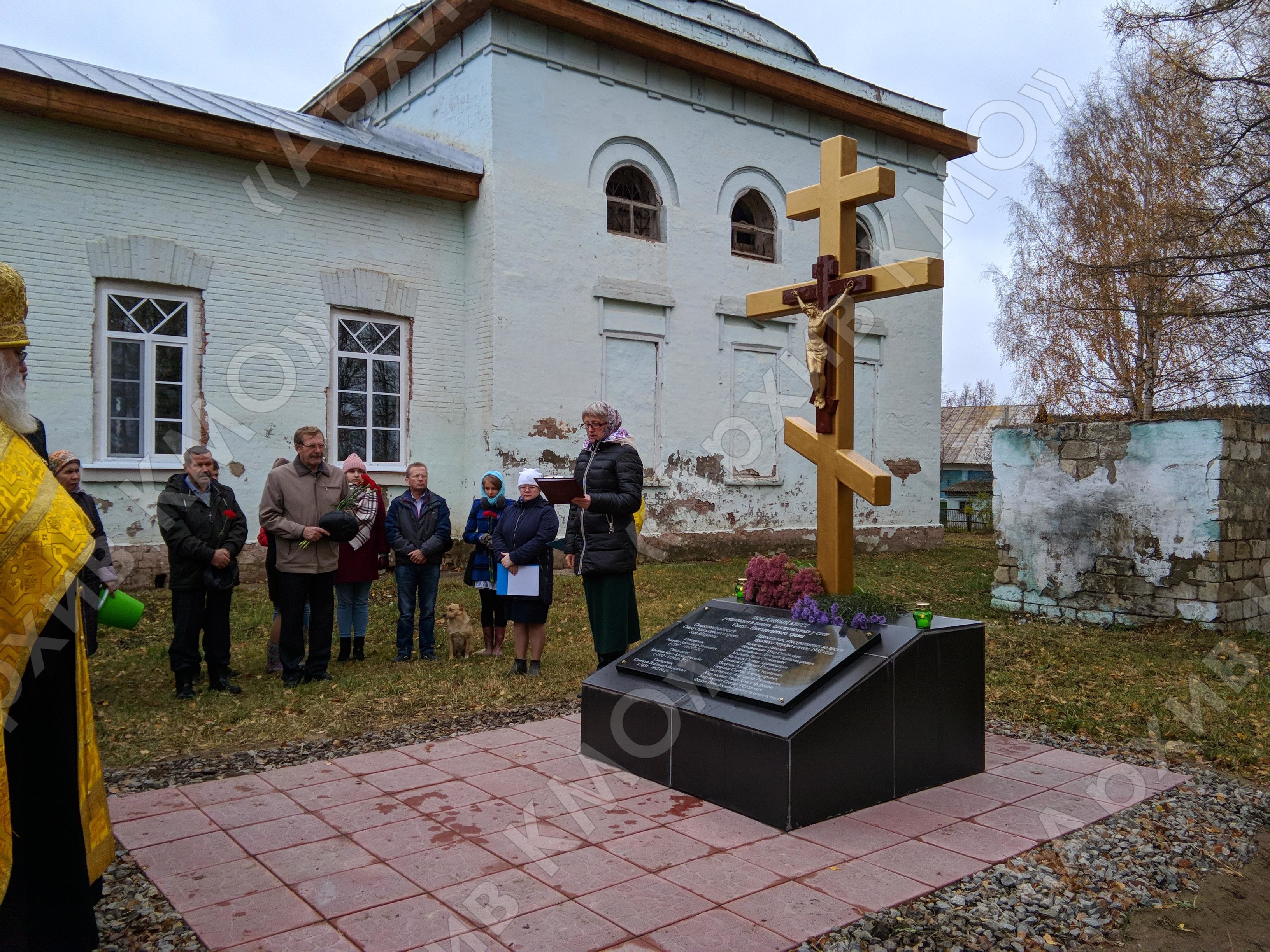 Реквизиты документа: Жители села Мазунино во время освящения поклонного креста возле Николаевского храма. 2018 г. Фотография // КГА. Ф. р-1001. Оп. 1. Д. 1453.
