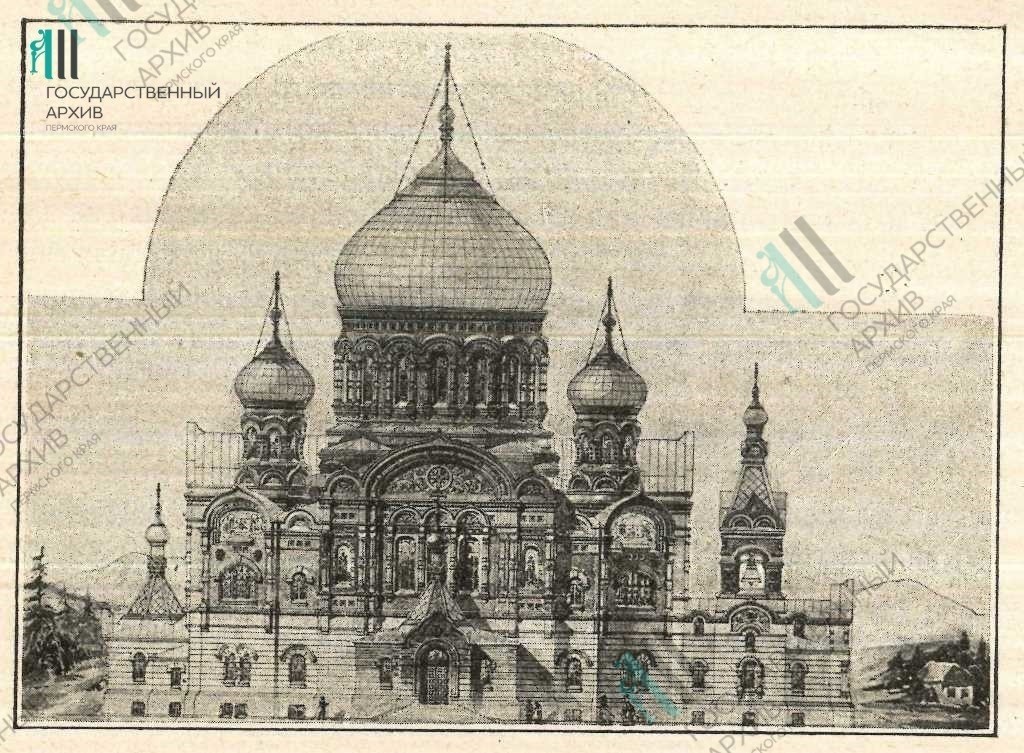Реквизиты документа: Чертеж фасада строящегося Крестовоздвиженского собора, 1910 г. // ГАПК. ФПИ. №576. Л. 89