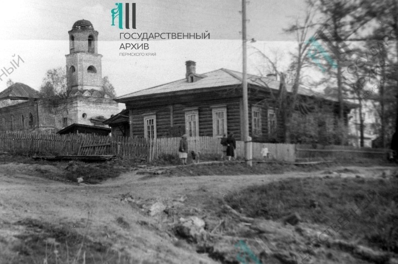 Перечень выявленных документов: Здания на одной из улиц в селе Пянтег Чердынского района. Слева - Пророко-Ильинская церковь. 1980-е гг. Фотография // ГАПК. Ф. ф-78. Оп. 78п. Д. 353; Рапорты священноцерковнослужителей о сгоревшей во время пожара деревянной Ильинской церкви в с. Пянтег. 09.04.1793 - 06.05.1793 г. // ГАПК. Ф. 316. Оп. 1. Д. 116. Л. 99-100 об.