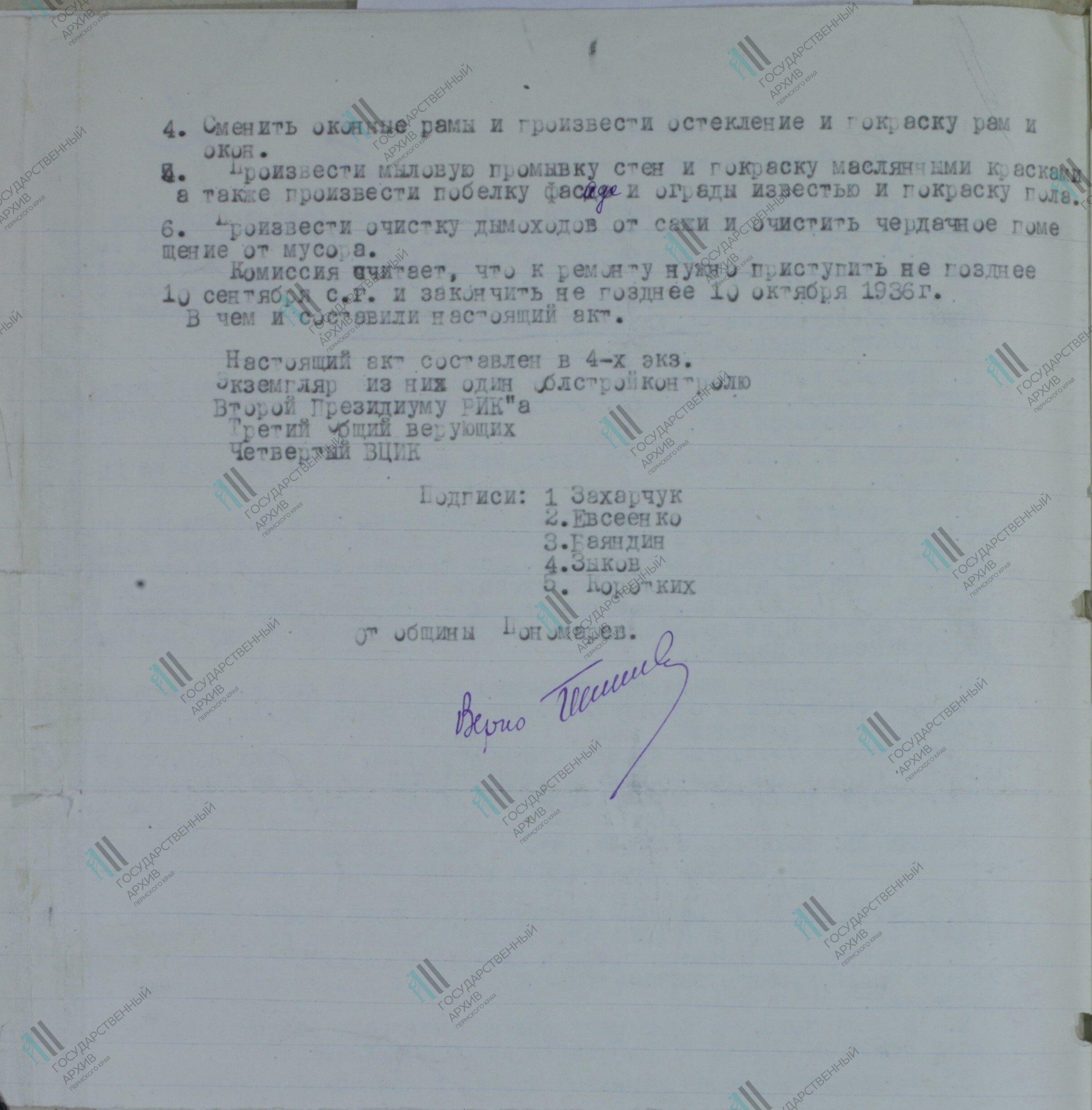 Реквизиты документа: Акт о техническом состоянии Георгиевской церкви 8 сентября 1936 г. // ГАПК. Ф. р-1205. Оп. 1. Д. 600. Л. 2 об.