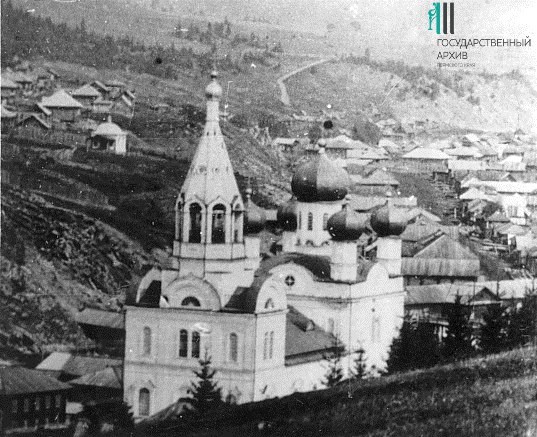 Перечень выявленных документов: Свято-Троицкий собор в с. Кын. 1876 г. Фотография // ГАПК. Ф. р-1687. Оп. 1. Д. 438. Л. 5.