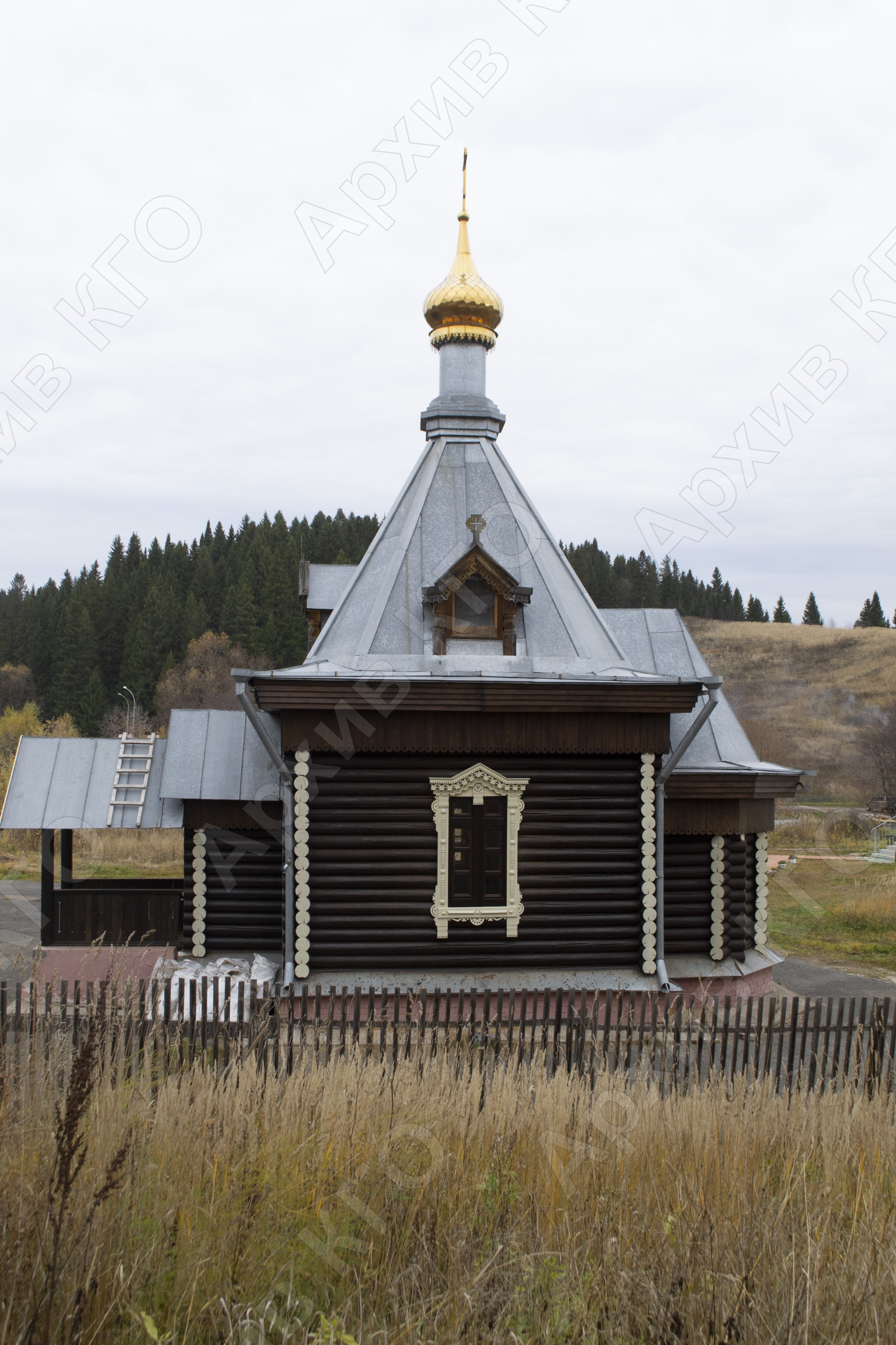 Реквизиты документа: Часовня блаженной Матроны в п. Майский. Вид справа. 13 октября 2020 г. Фотограф Данилов Д.А. // ГАПК. Ф. 140. Оп. 6. Д. 184.